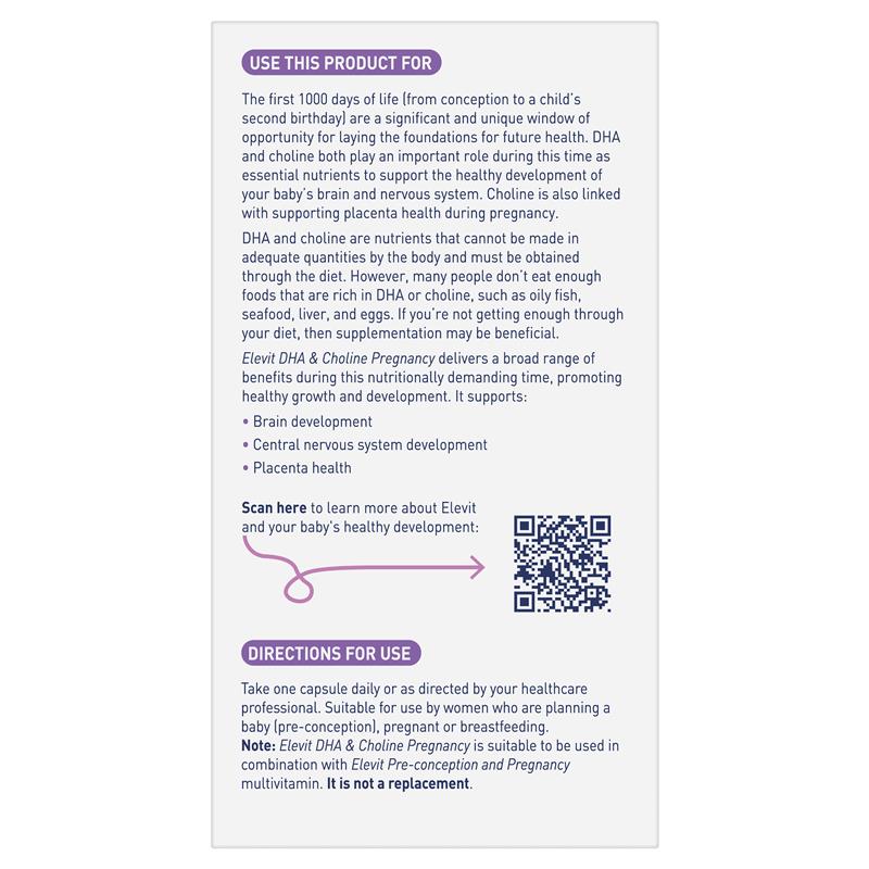 Elevit DHA + Choline For Pregnancy and Breastfeeding 60 เม็ด ดูแลสมองและสายตาของทารก
