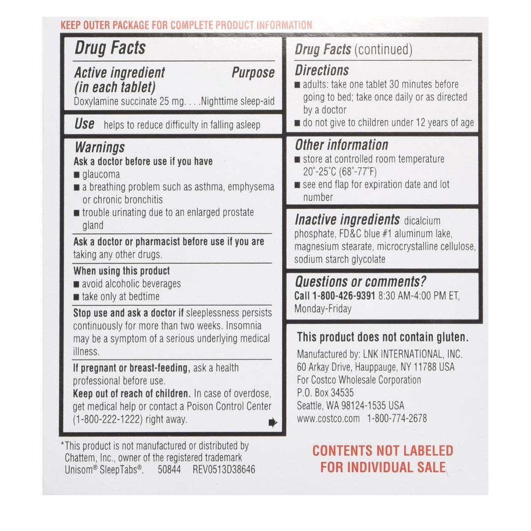 Kirkland Signature Sleep Aid Tablets มี Doxylamine Succinate 25mg เป็น Active Ingredient ค่ะ ซึ่ง Doxylamine Succinate นี้ เป็นยา Antihistamine (ยาแก้แพ้) ที่มีฤทธิ์ทำให้ง่วงนอน ที่สามารถใช้เป็นตัวช่วยในการนอนหลับสำหรับเด็กอายุ 12 ปีขึ้นไปและผู้ใหญ่ที่มีปัญหานอนไม่หลับ นอนหลับไม่สนิท หรือหลับไม่ลึก ตื่นบ่อยๆ เป็นครั้งคราวค่ะ