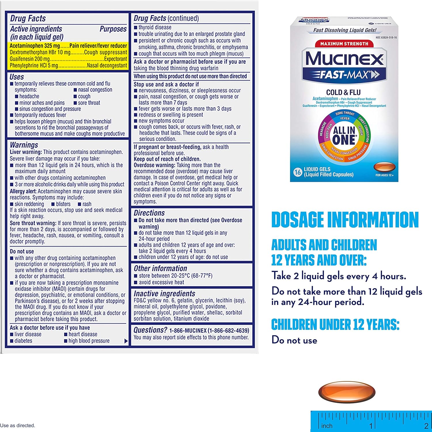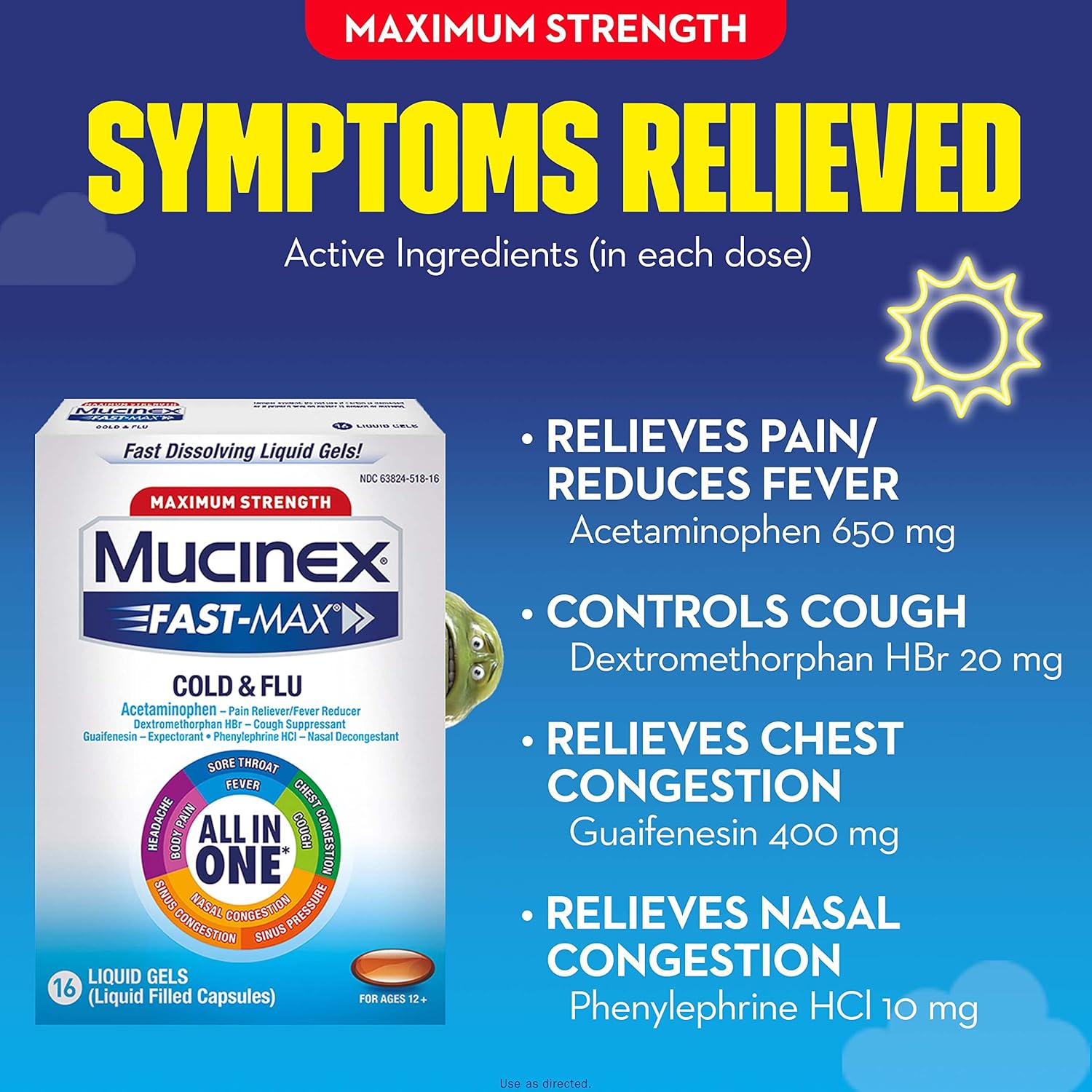 Mucinex Maximum Strength Fast-Max Cold & Flu All-in-One Liquid Gels, 16 เม็ด
