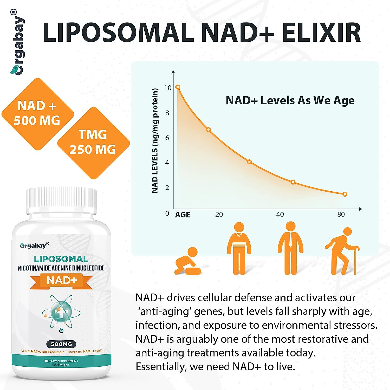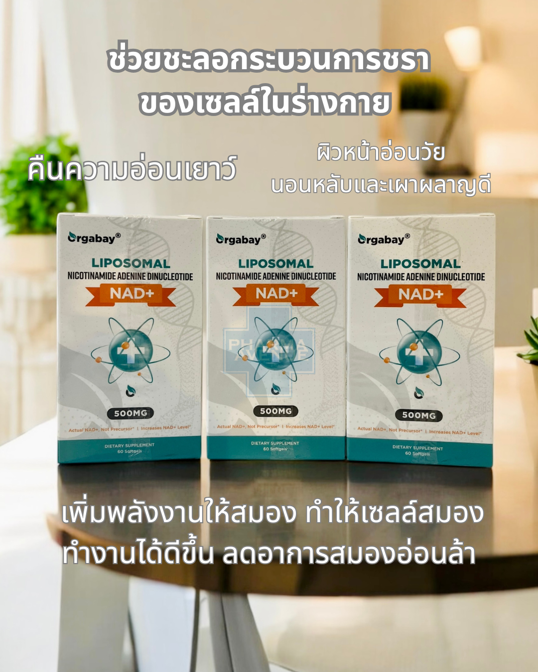 ORGABAY Liposomal NAD+ 500 mg บวกเพิ่ม TMG เพิ่มพลังงานให้ระดับลึกถึงเซลล์ ผิวหน้าอ่อนวัย นอนหลับและเผาผลาญดี 60 softgels