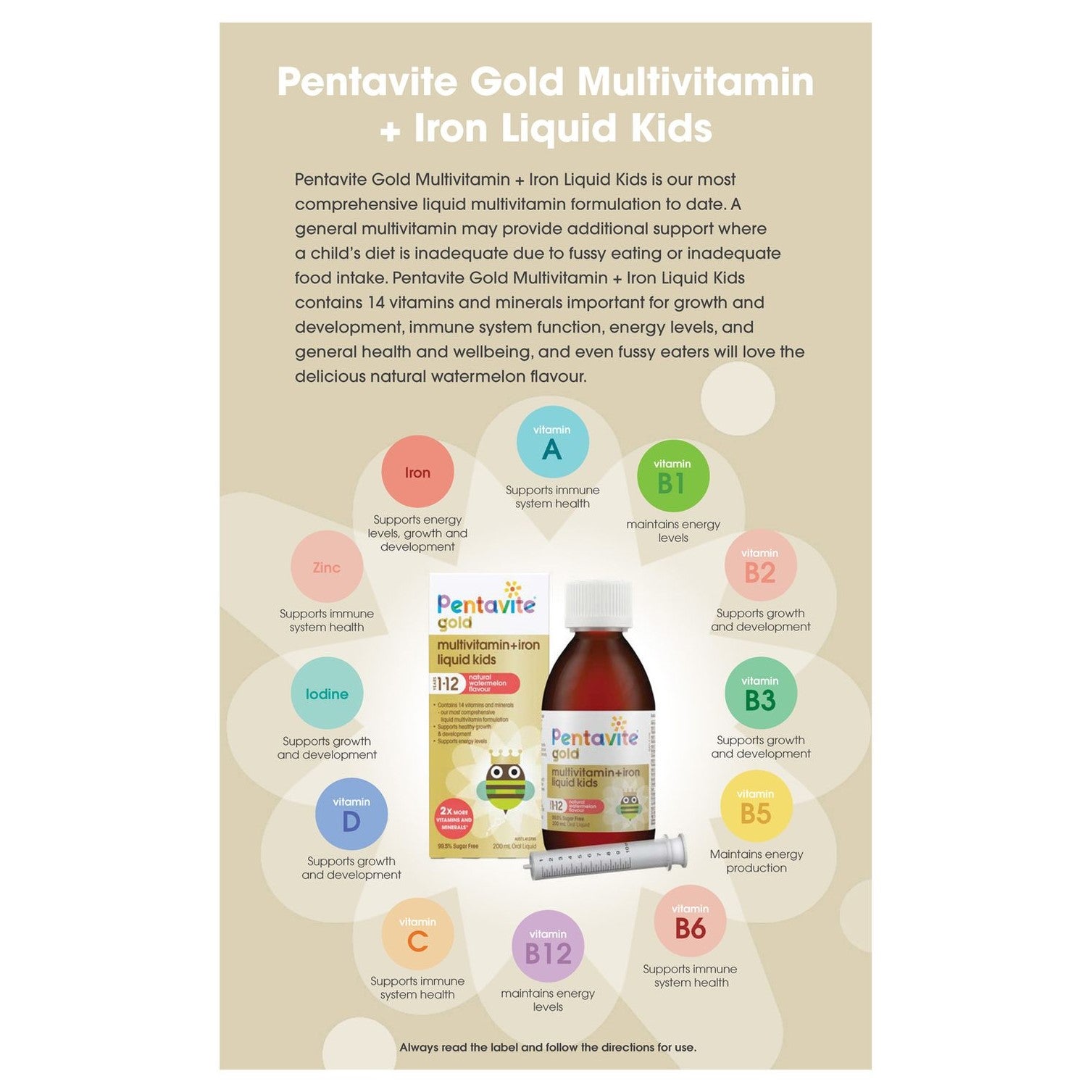 Pentavite® Gold Multivitamin + Iron 200ml วิตามินรวมแบบน้ำสำหรับเด็กที่เบื่ออาหาร ทานน้อย สารอาหารไม่ครบ
