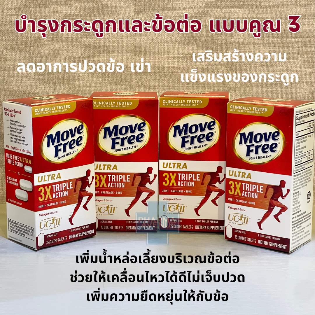 Schiff Move Free Ultra 3x Triple Action บำรุงกระดูกและข้อต่อ แบบคูณ 3 ลดอาการปวดข้อและเข่า 75 เม็ด