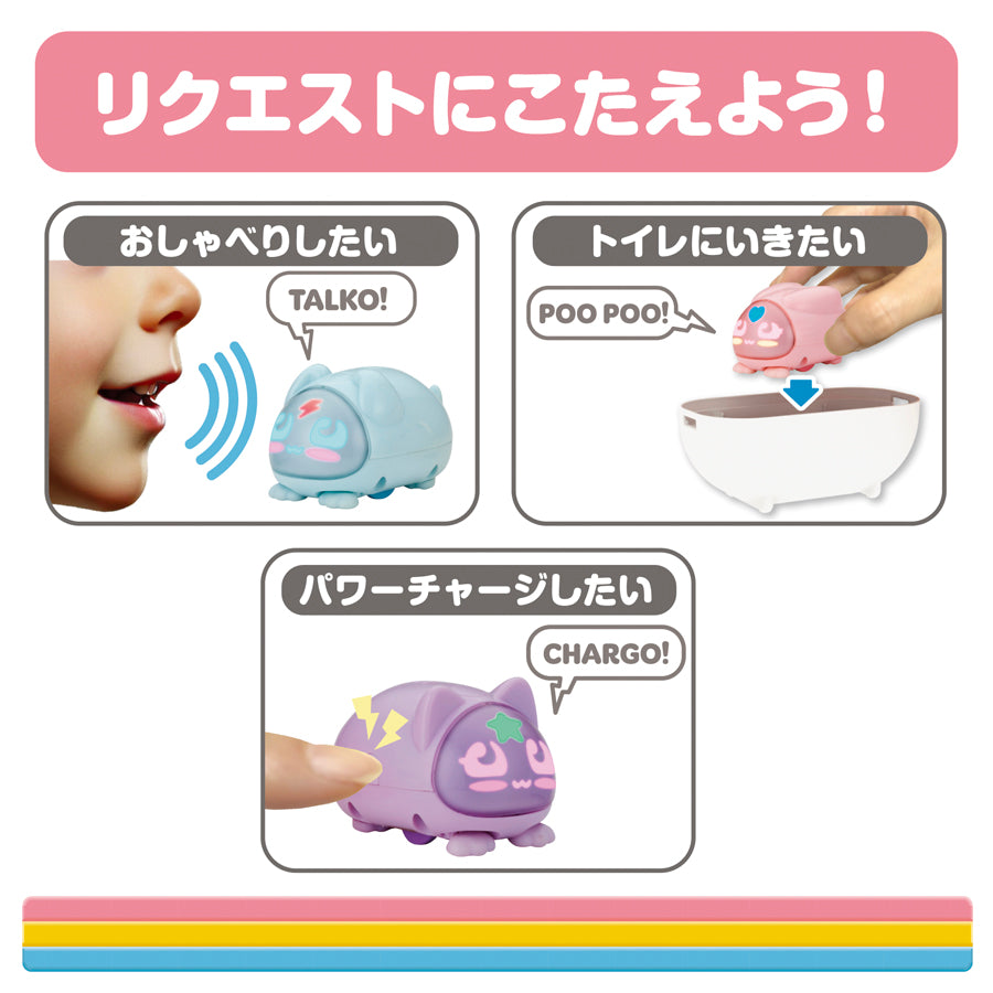 ระบบเติบโต (Growth System) ยิ่งดูแลยิ่งเก่ง: ตอบสนอง “คำขอ” ของน้อง เช่น Talk / Toilet / Recharge แล้วน้องจะเลเวลอัป และปลดล็อกความสามารถใหม่ ๆ (เช่น เต้น/ร้องเพลง)