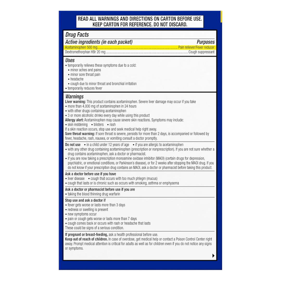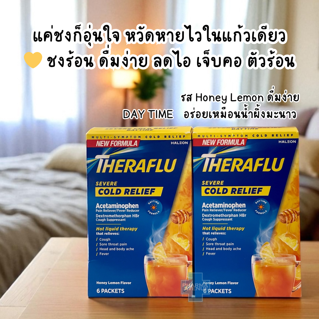 Theraflu Severe Cold Relif สูตรผสมน้ำร้อน (Hot Liquid Therapy) รส Honey Lemon ที่ช่วยบรรเทาอาการหวัดรุนแรง จบหลายอาการในซองเดียว